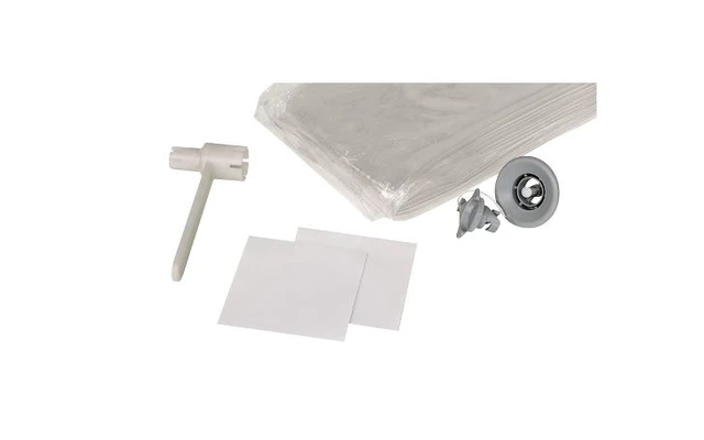 1 chambre à air, 1 valve pour tentes gonflables, 1 outil pour valves, 2 bandes adhésives