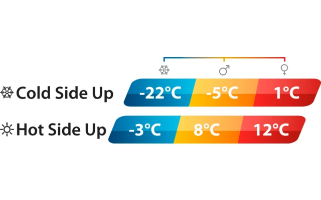 Température limite hommes : -5 cold side up/ 8 warm side up
