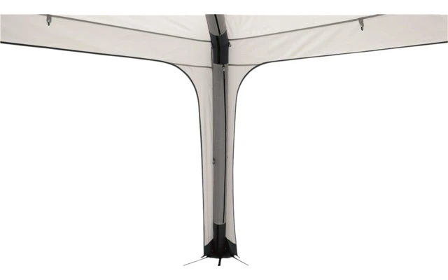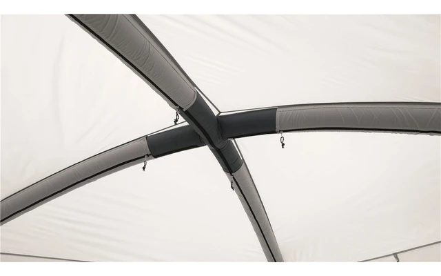 - Le toit clair de l’auvent dans une teinte chaude crée une ambiance lumineuse et agréable dans la tente